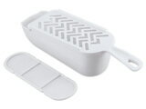 セレクト100 おろし器 000DH3002価格: 1,239円レビュー評価: 0.0 レビュー数:0 ※パッケージデザイン等は予告なく変更されることがあります。商品説明「セレクト100 おろし器 000DH3002」は、力を入れずにラクにおろせる工夫がいっぱいのおろし器です。斜め45度の刃で抵抗を少なくし、また均一におろせるよう目の高さやピッチを変えています。おろす面は食材に力を入れやすい7度の傾斜をつけました。容器は角を取った滑らか形で洗いやすく汚れがたまり難い形状です。力を入れずにラクにおろせる工夫がいっぱいのおろし器です。余分な水分をきり、適度な水分を残せる目皿つき。材質ABS樹脂・ナイロン・ポリウレタンホーム&キッチン > 調理器具 > スライサー・おろし器・チョッパー > |